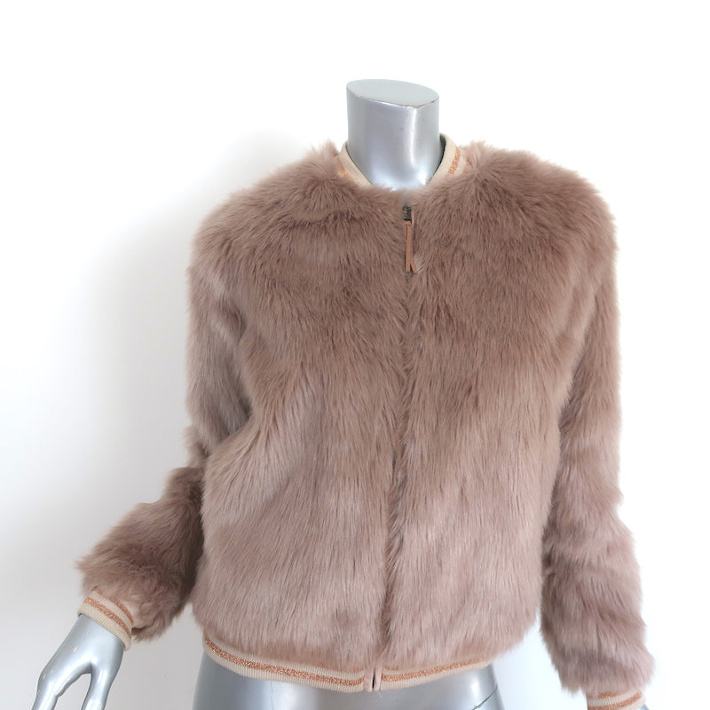 MOTHER The Letterman Faux Fur Bomber Jacket Blush Size Extra Small Measurements