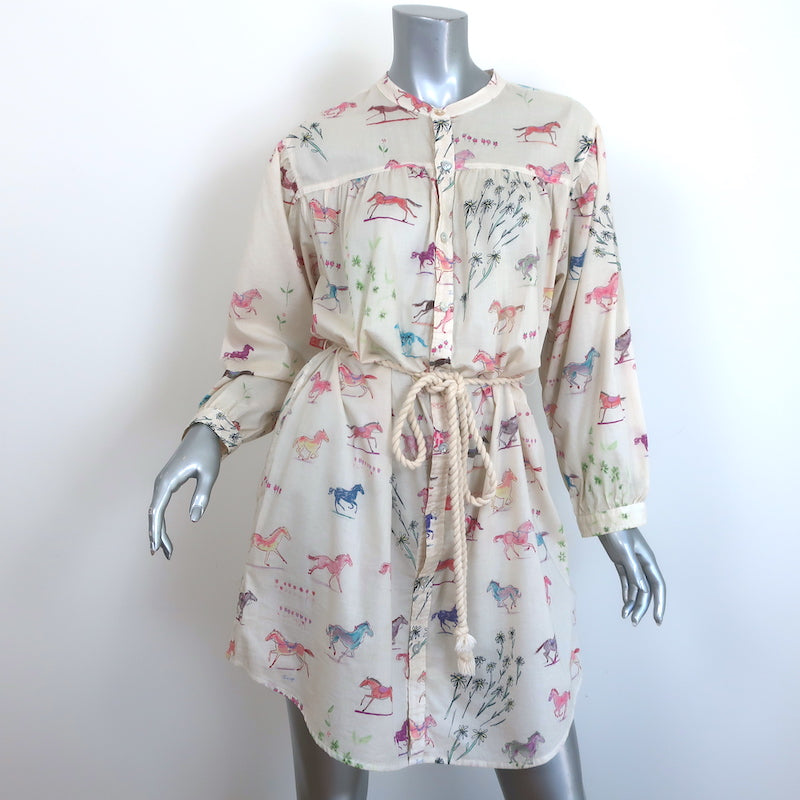 MOTHER The New To Town Shirtdress Cream Goodbye Horses Print Size Medium