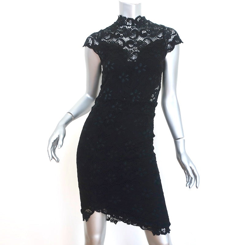 Nightcap High Neck Mini Dress Black Stretch Lace Size 2 Cap Sleeve Sheath