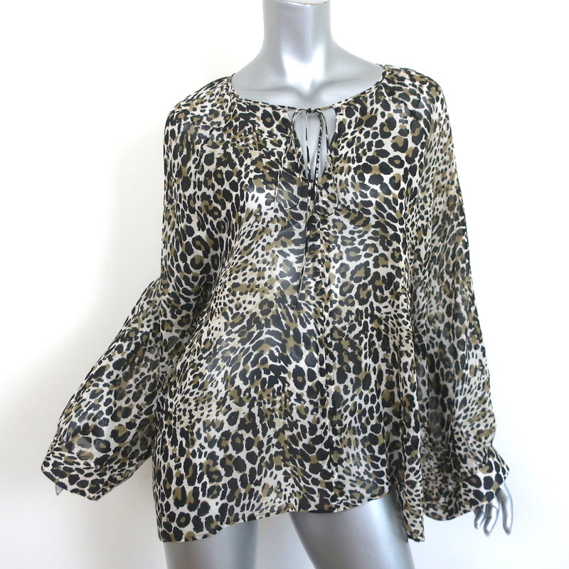 Nili Lotan Blouse Acadia Leopard Print Silk Size Extra Small Long Sleeve Top Measurements