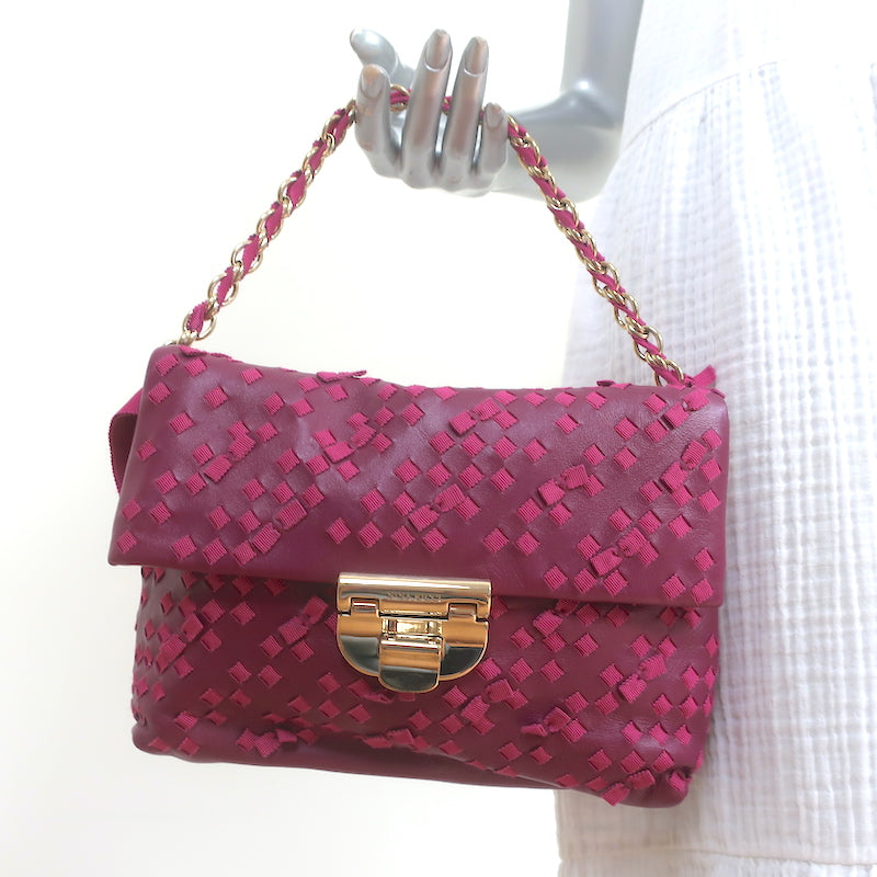 Nina Ricci Chain Strap Small Shoulder Bag Berry Ribbon-Woven Leather