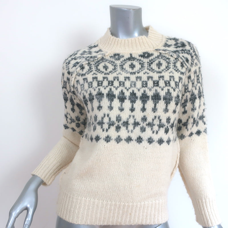 NSF Fair Isle Sweater Ivory/Gray Cotton-Wool Size Small