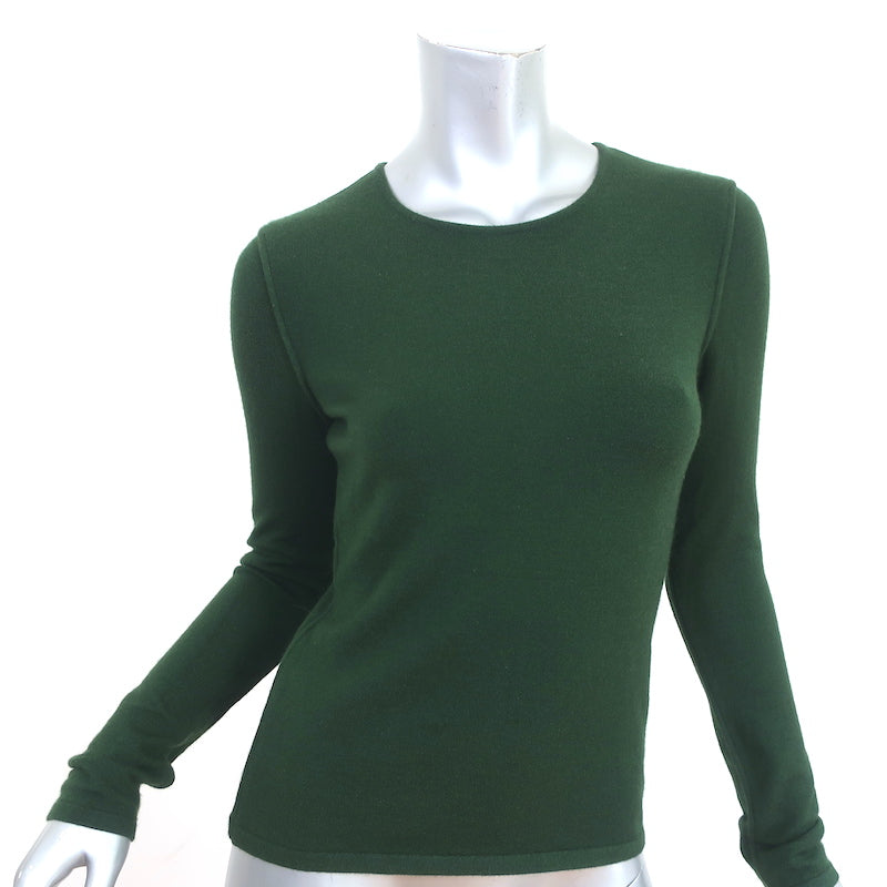 Oscar de la Renta Sweater Green Cashmere-Silk Size Extra Small Crewneck Pullover Measurements