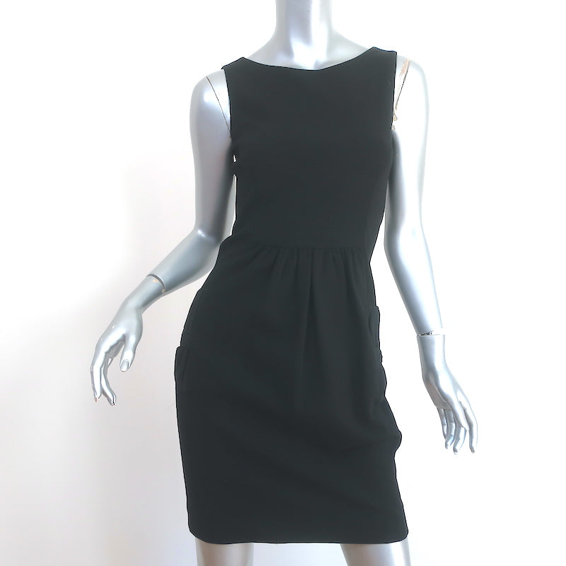 Prada Bow Pocket Mini Dress Black Size 40 Sleeveless Sheath
