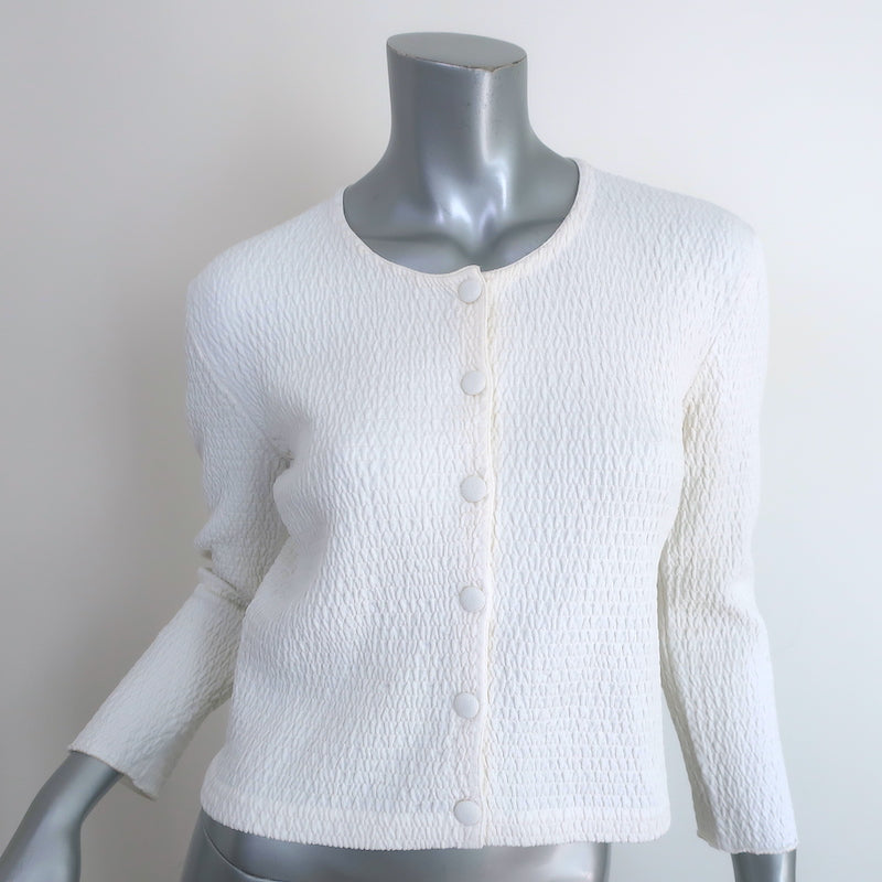 Pre-loved. Very faint yellowing on underarms. Tiny brown smudge on back left shoulder may come out with cleaning.