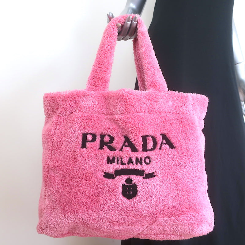 Prada Large Terry Logo Tote Pink Fleece Shoulder Bag