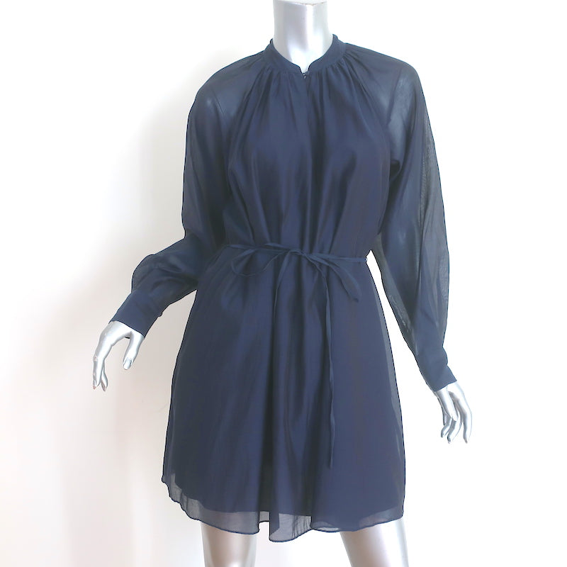 Rebecca Taylor Long Sleeve Mini Dress Navy Cotton-Silk Size Small NEW