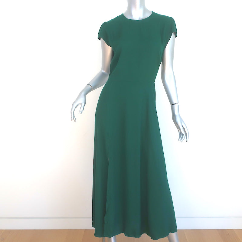 Reformation Gavin Open-Back Midi Dress Green Crepe Size 8