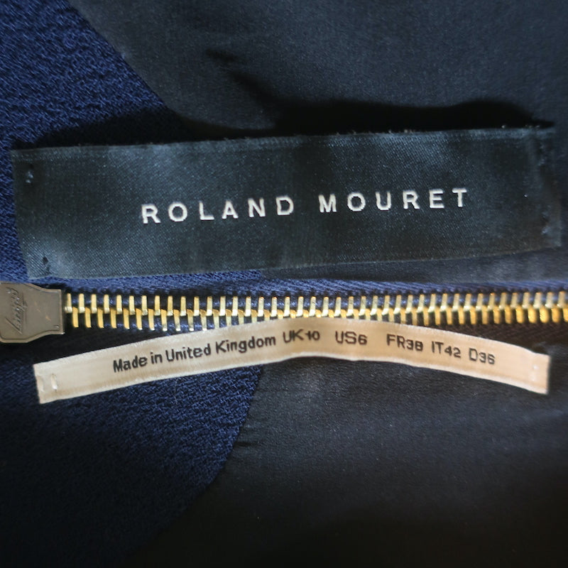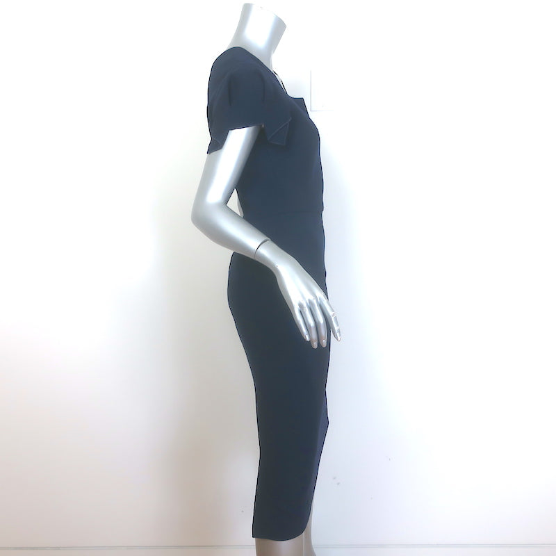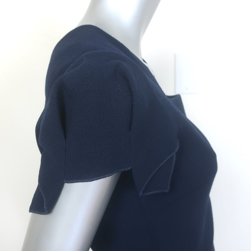 Roland Mouret Royston Cap Sleeve Sheath Dress Navy Wool Crepe Size US 6