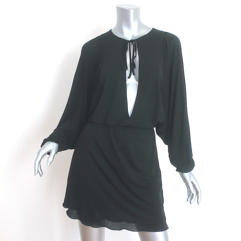 Saint Laurent Batwing Sleeve Keyhole Mini Dress Black Jersey Size 38