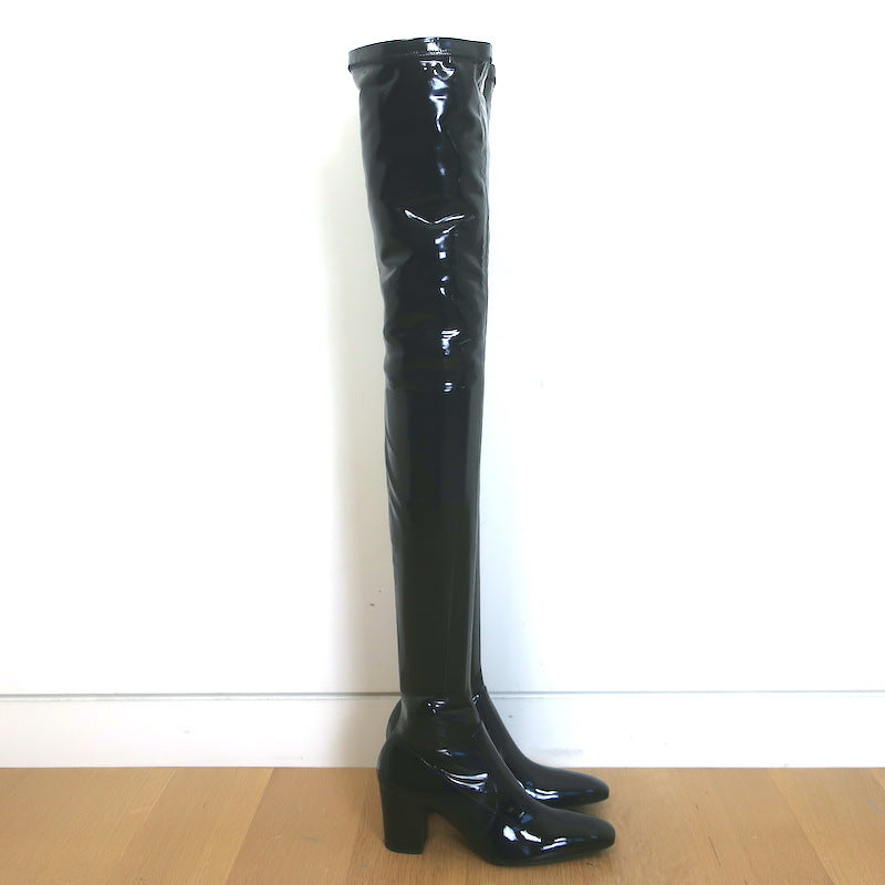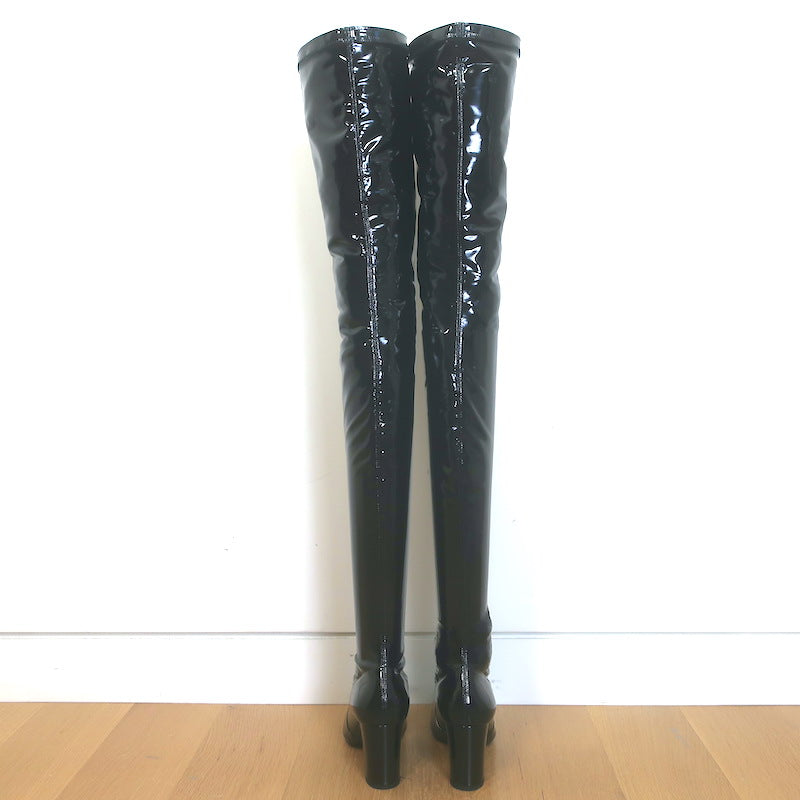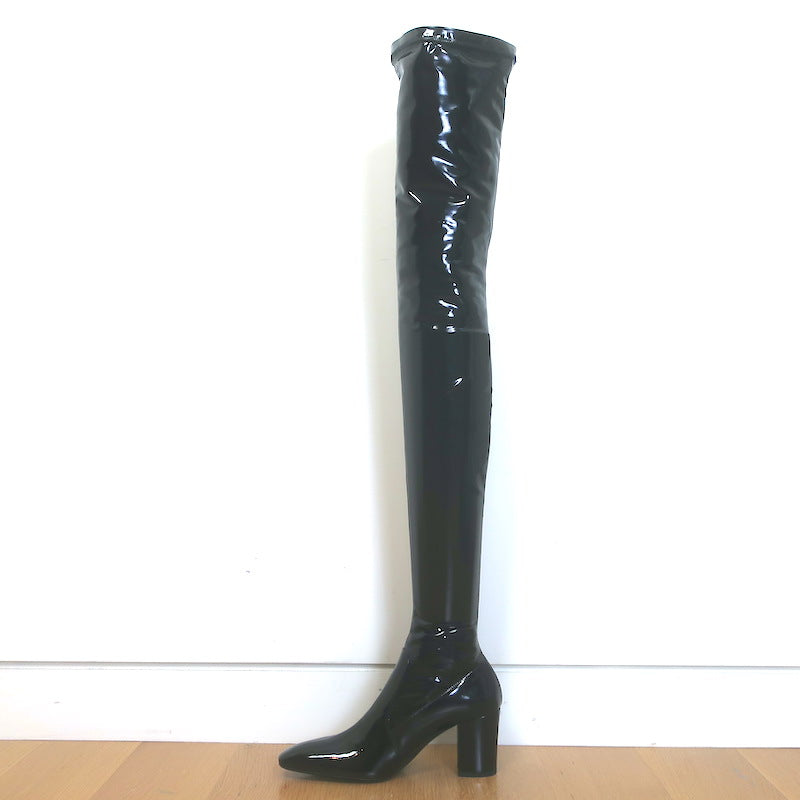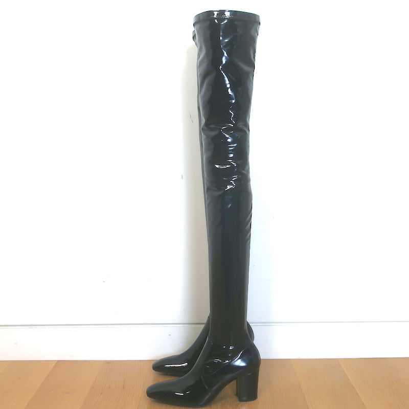 Saint Laurent Betty Thigh High Boots Black Stretch Vinyl Size 38.5