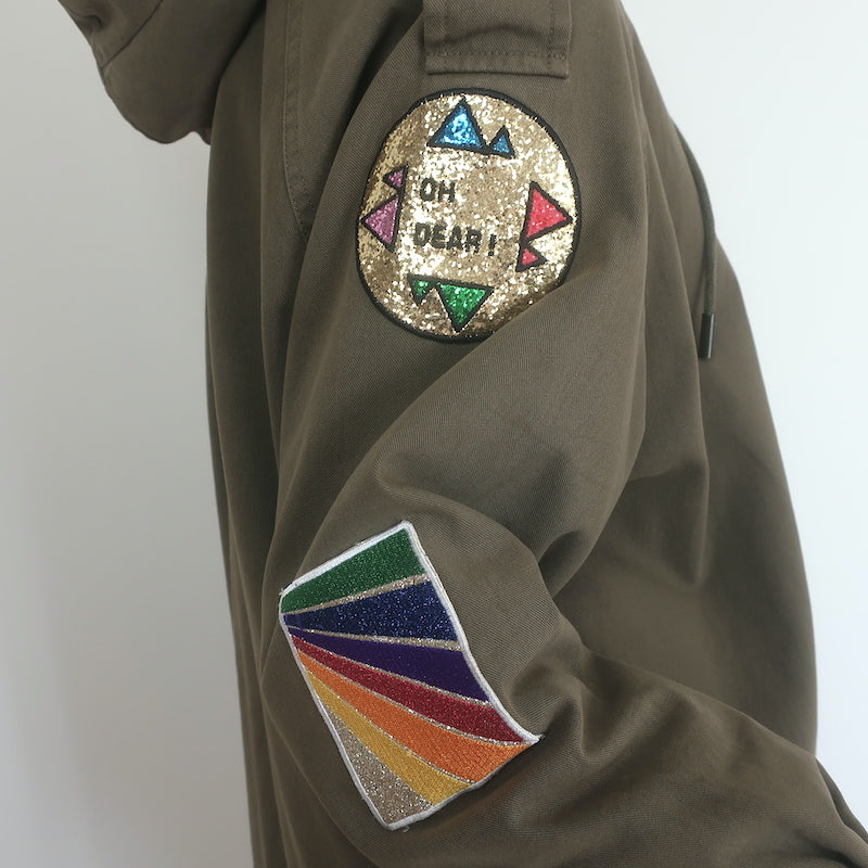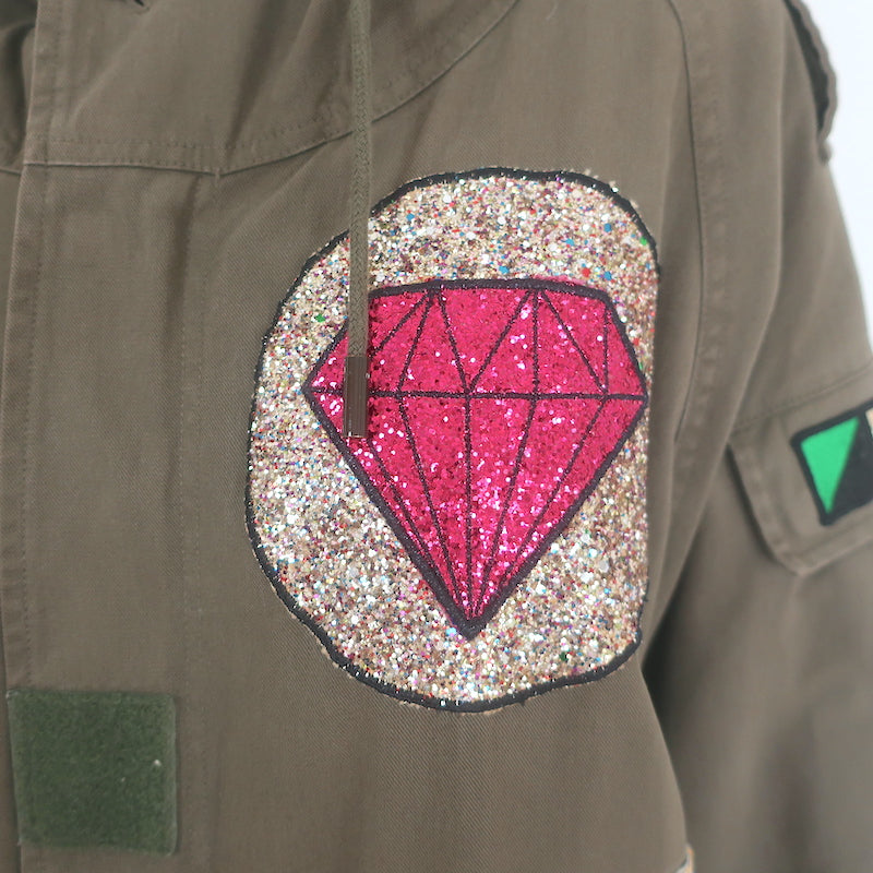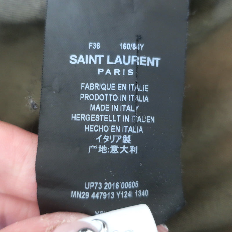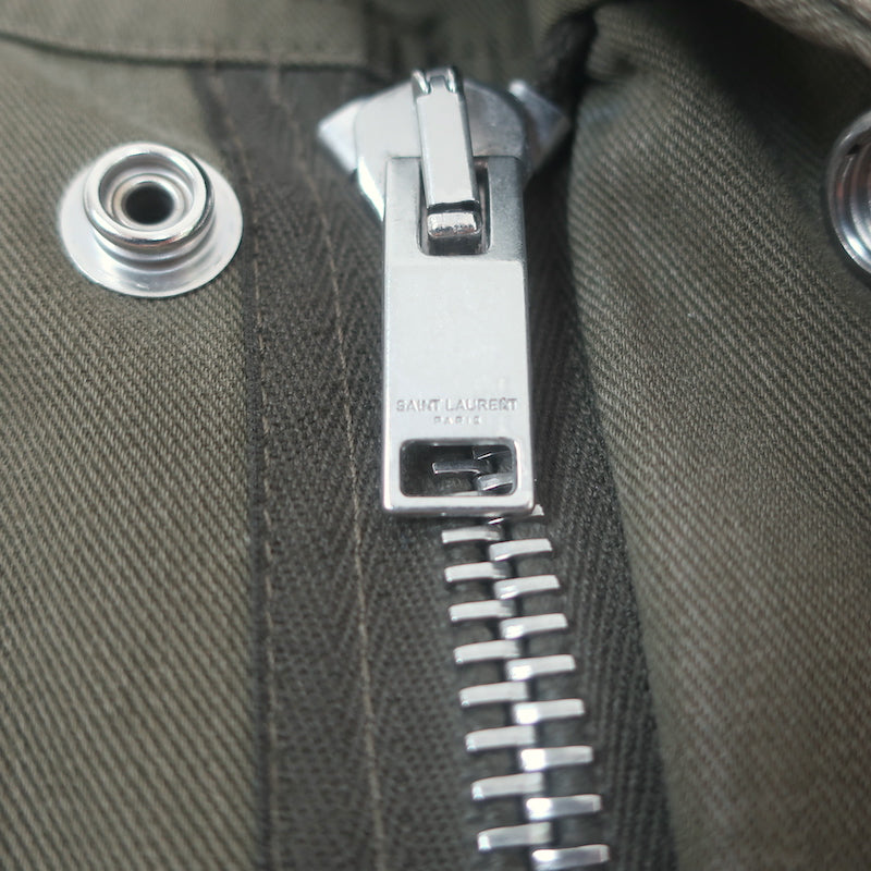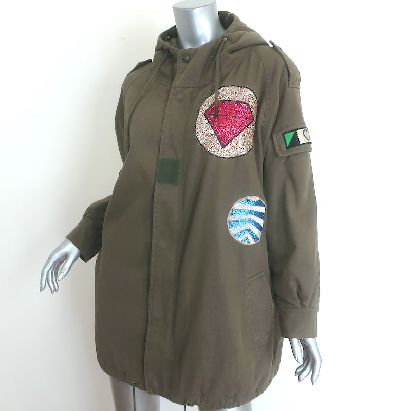 Saint Laurent Glitter Patch Military Parka Jacket Army Green Size 36