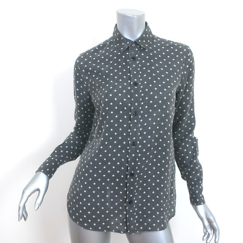 Saint Laurent Star Print Button Down Shirt Dark Gray Cotton Size Medium Measurements