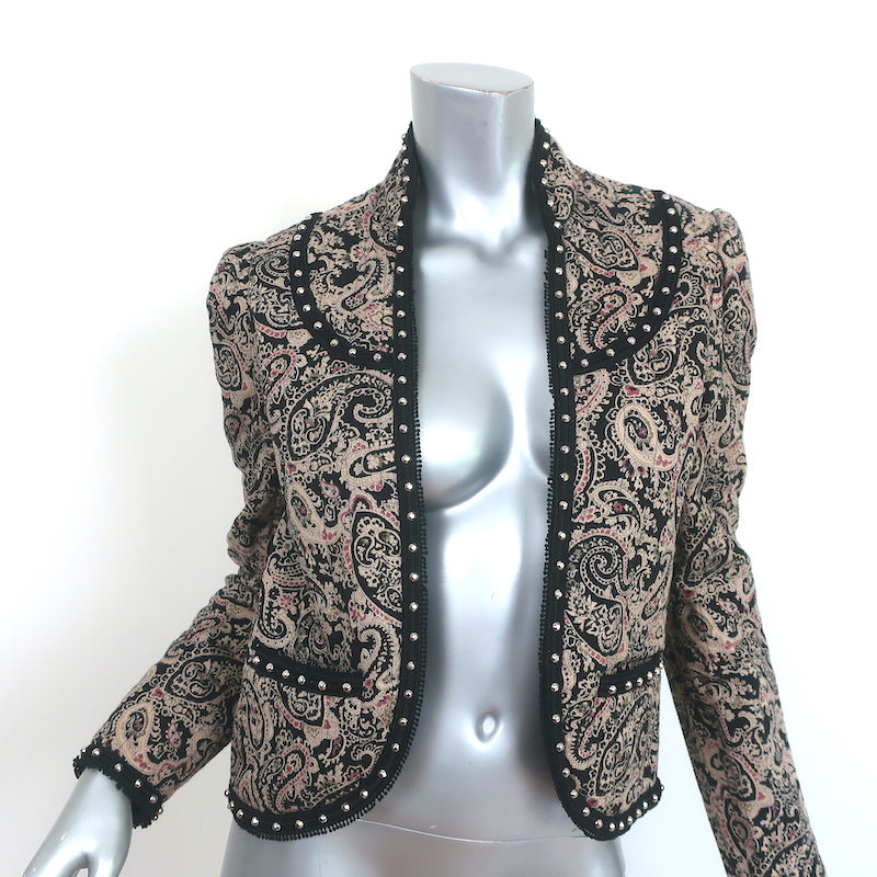 Saint Laurent Studded Open-Front Jacket Paisley Print Padded Cotton Size 40