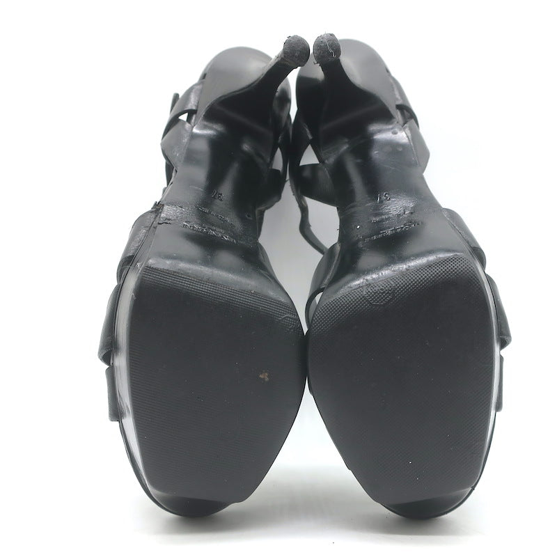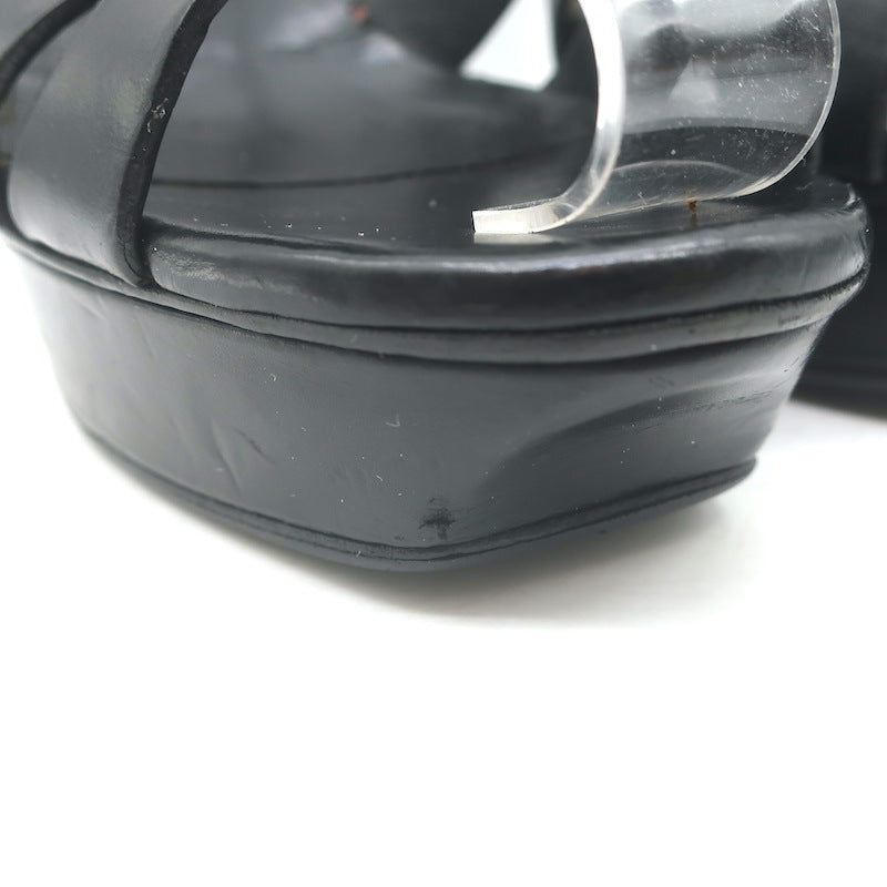 Saint Laurent Tribute 105 Platform T-Strap Sandals Black Leather Size 37