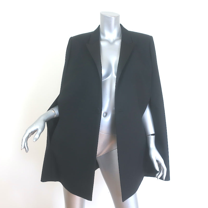 Saint Laurent Tuxedo Cape Jacket Black Satin-Trimmed Wool Size 40 Measurements