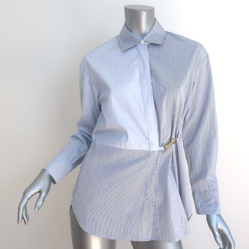 Sandro Maddly Belted Shirt Blue Striped Cotton Size 0 Long Sleeve Top Measurements