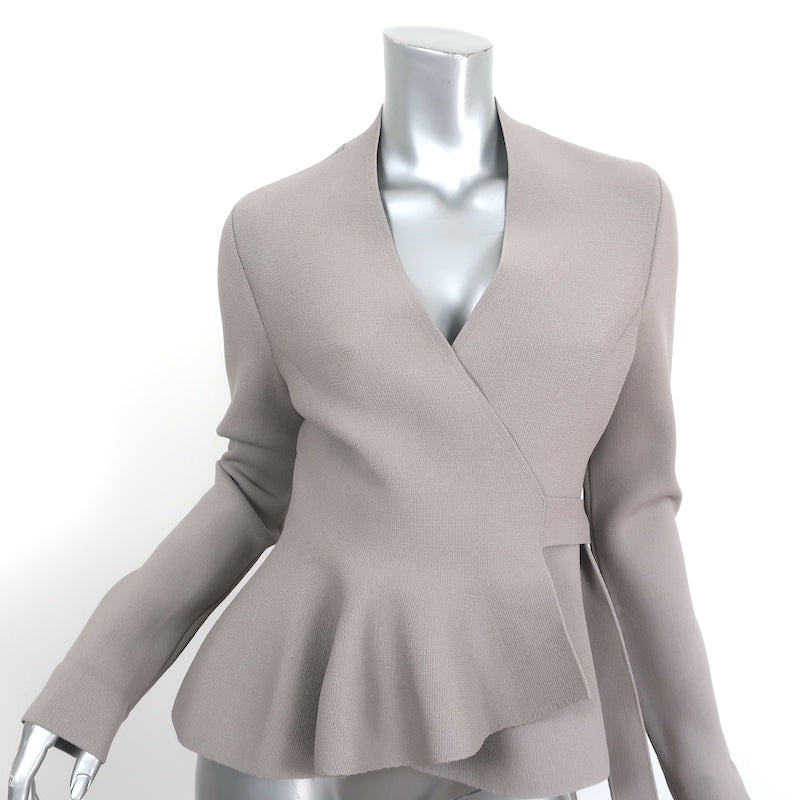Scanlan Theodore Peplum Wrap Jacket Light Gray Crepe Knit Size Medium