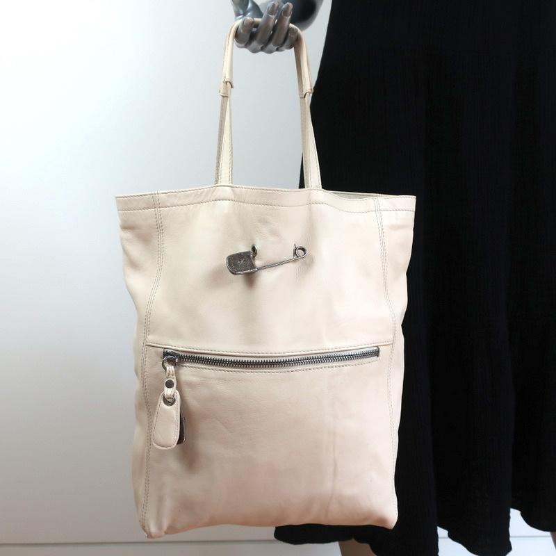 Sissi Rossi Safety Pin Shoulder Bag Cream Leather Large Tote