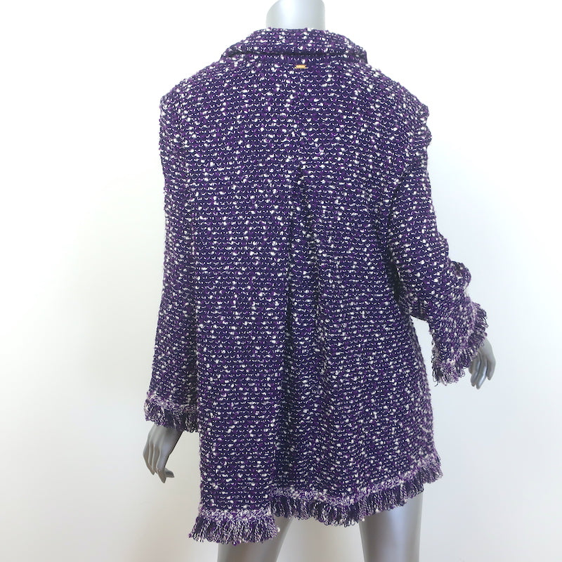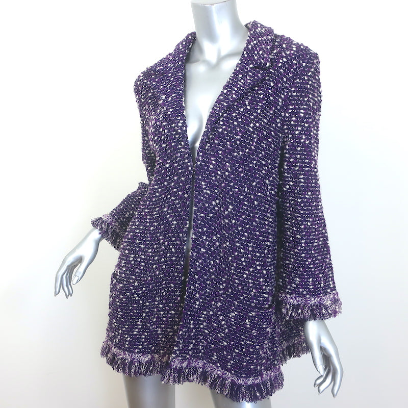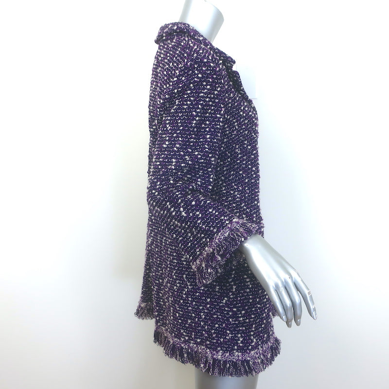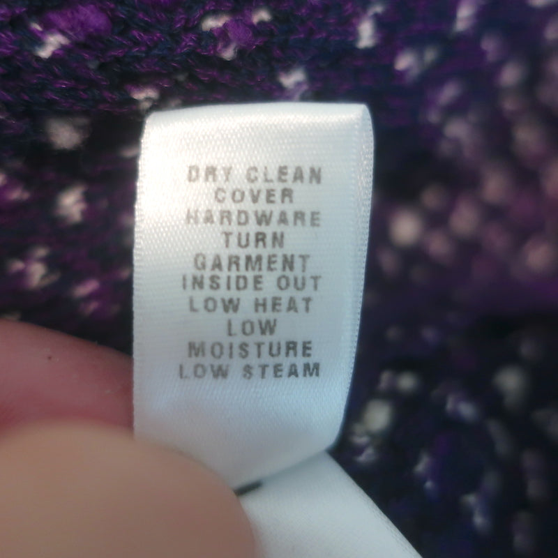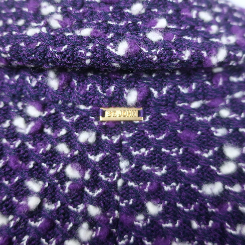 St. John Fringed Tweed Jacket Purple Wool-Blend Size Large