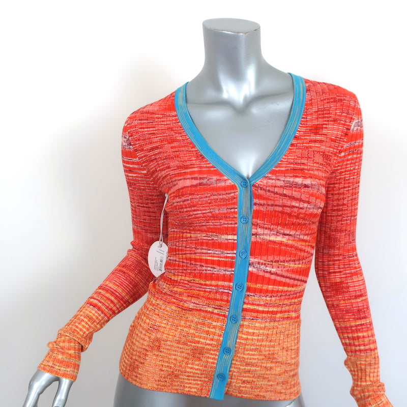 STAUD Cargo Sweater Blood Orange Ombre Rib Knit Size Small V-Neck Cardigan NEW Measurements
