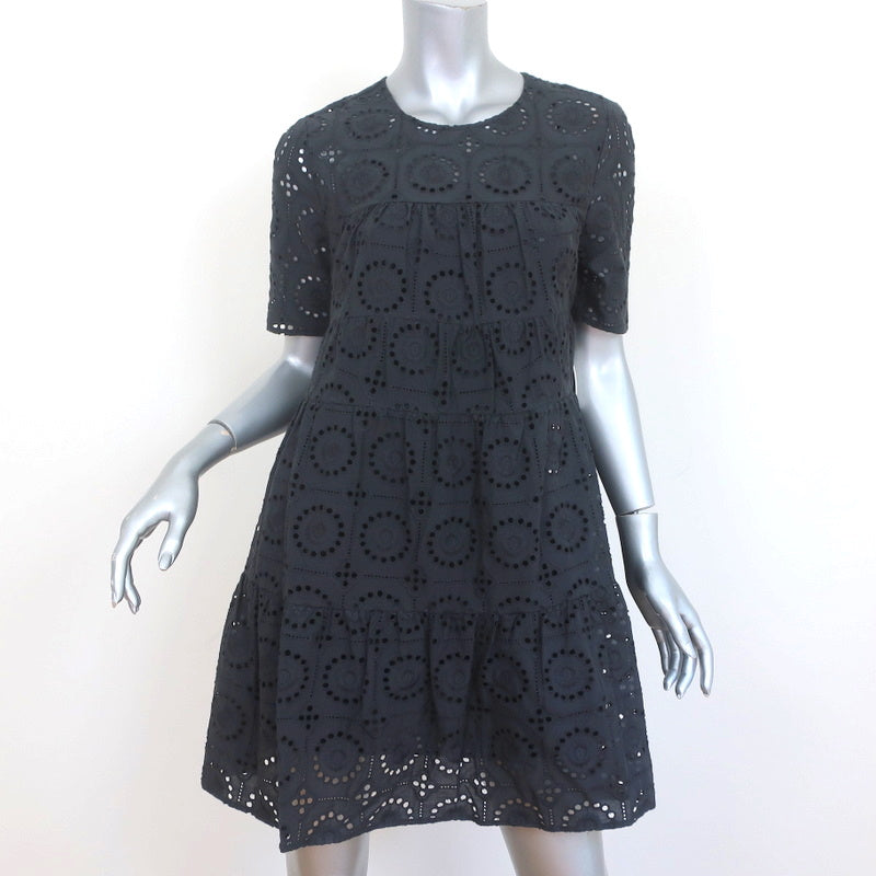 STAUD Hyacinth Mini Dress Black Embroidered Eyelet Size Small Short Sleeve NEW
