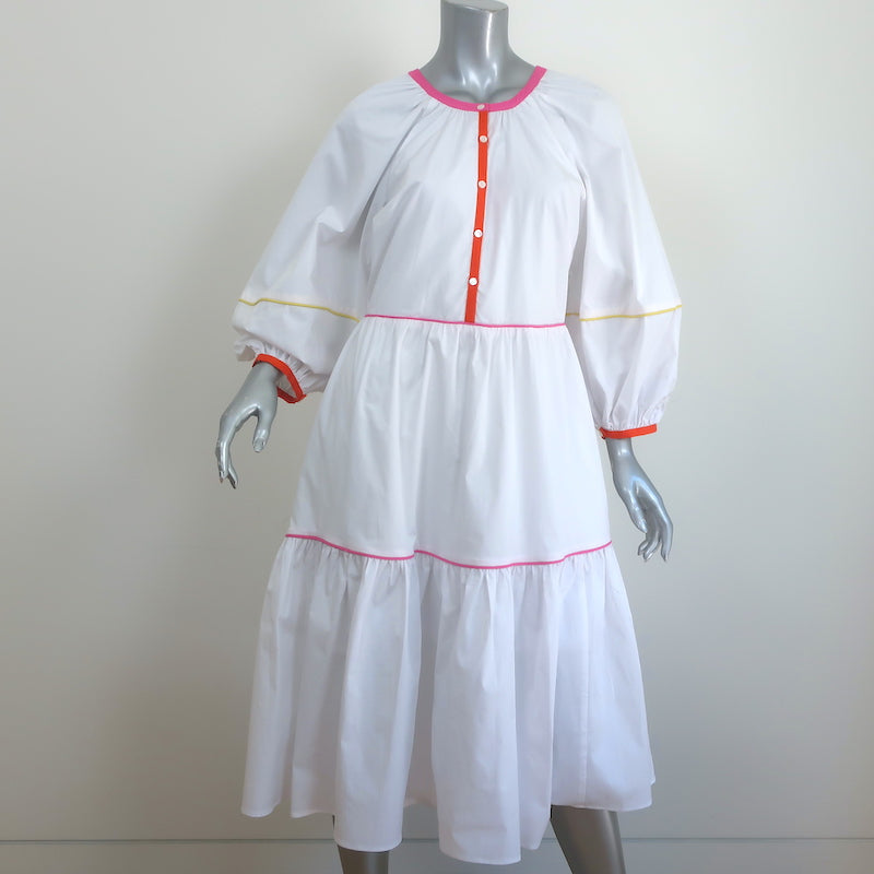 STAUD Puff Sleeve Midi Dress Demi White/Multicolor Stretch Cotton Size Small