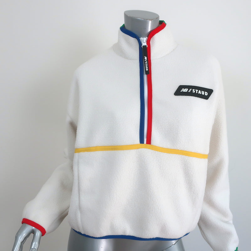 STAUD x New Balance Quarter-Zip Sherpa Jacket Cream Size Extra Small NEW