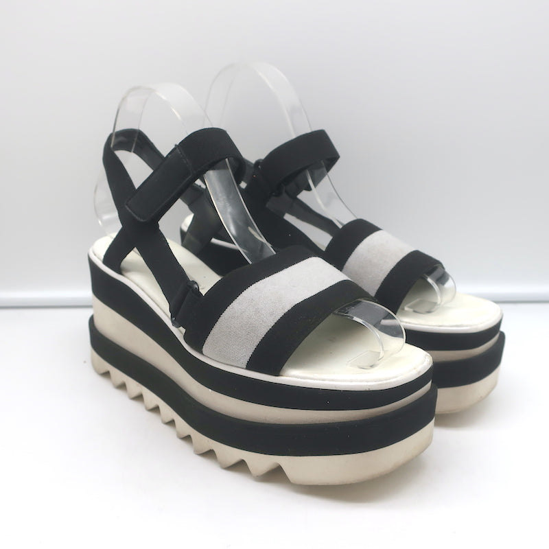 Stella McCartney Elyse Striped Platform Slingback Sandals Black & White Size 37