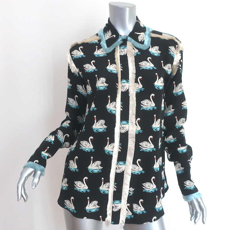 Gently worn. Good condition. No major flaws, some very faint yellow smudging on left sleeve hem is barely noticeable. Retails for $1,125!