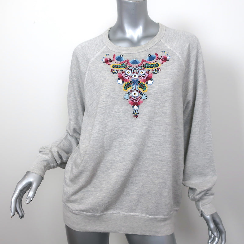 THE GREAT Floral Embroidered College Sweatshirt Heather Gray Size 2