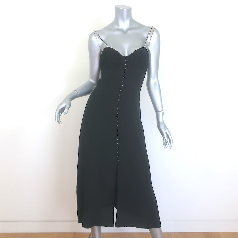 The Kooples Rhinestone-Strap Midi Dress Black Silk Size 1