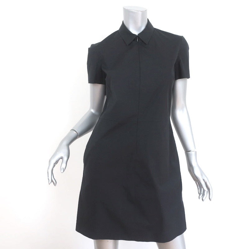 Theory Zip-Front Mini Dress Torma Black Stretch Cotton Size 6 Short Sleeve Measurements