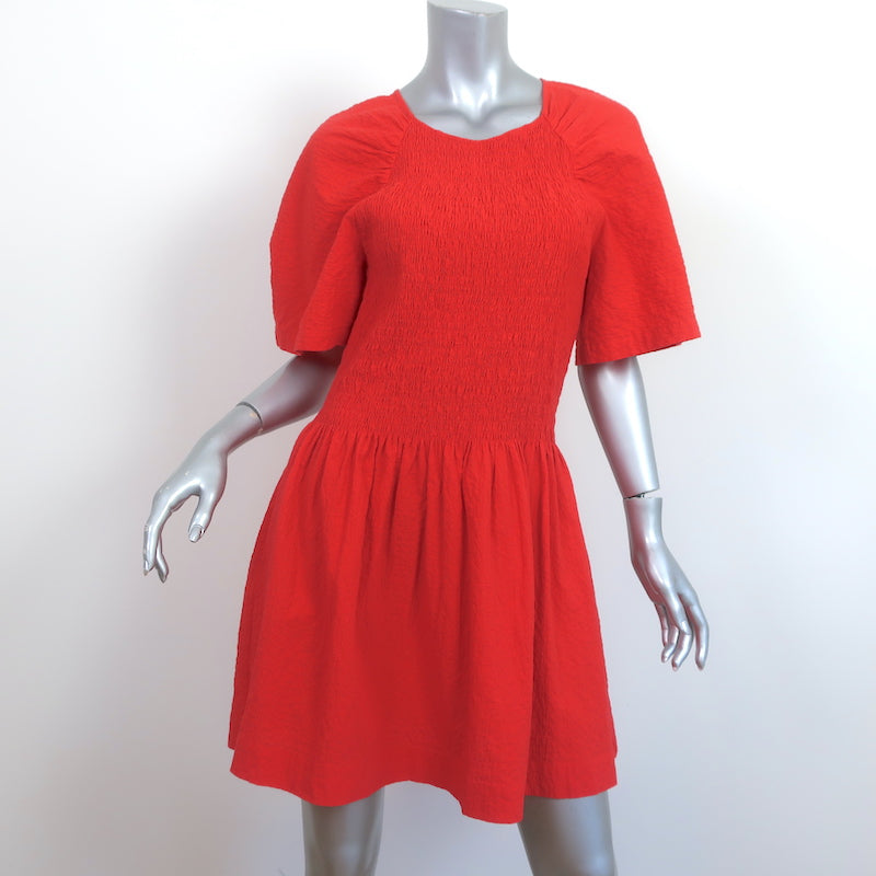 Three Graces London Smocked Mini Dress Orpha Red Cotton Size 12 Measurements