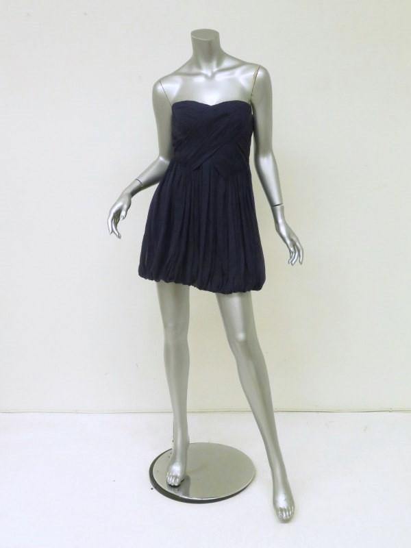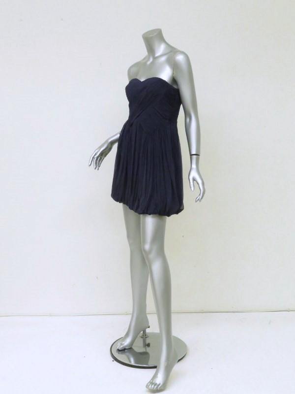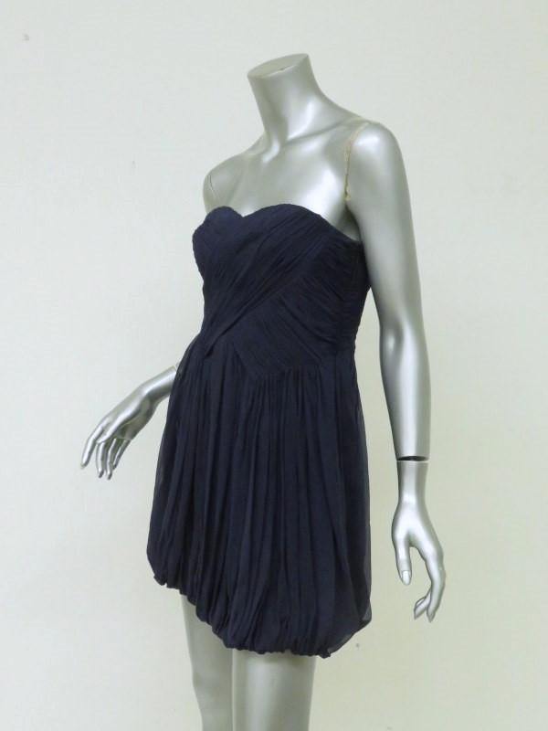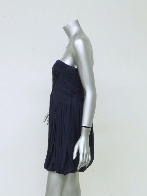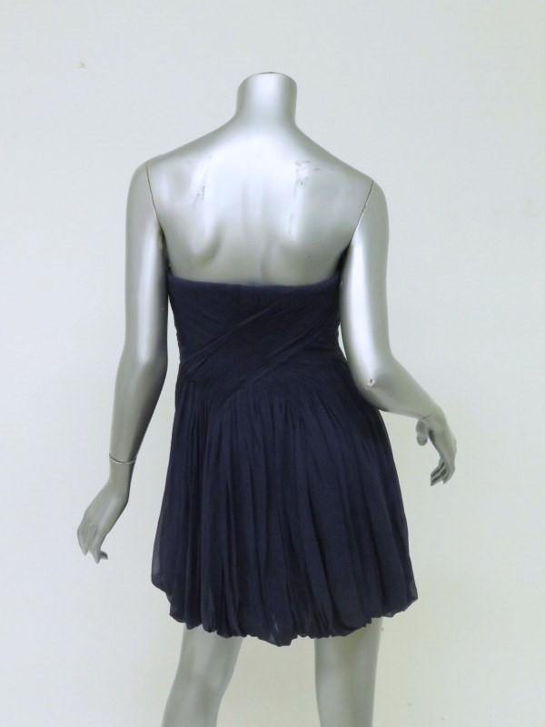 Tibi Dress Navy Pleated Silk Chiffon Size 4 Strapless Bubble Hem Mini