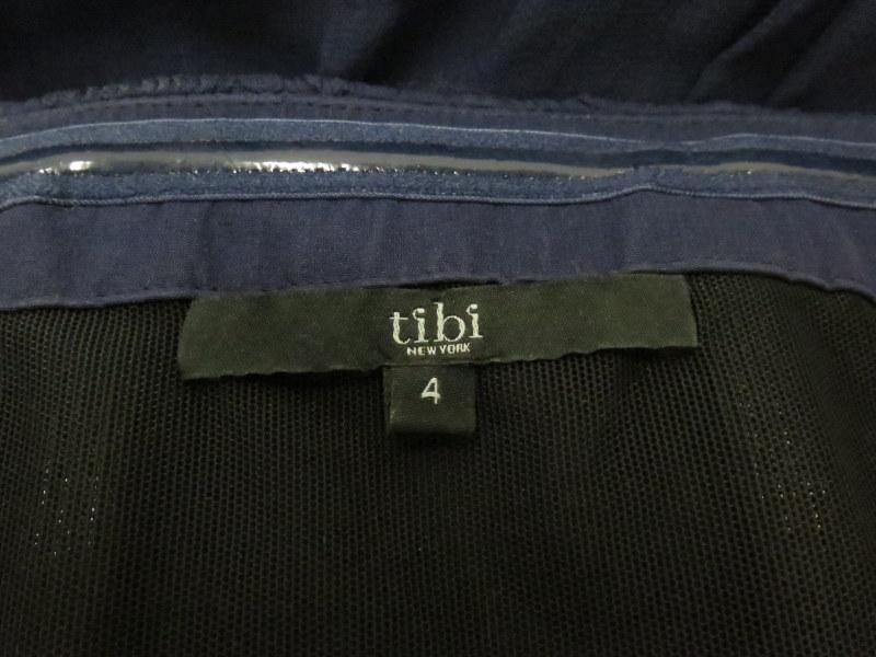 Tibi Dress Navy Pleated Silk Chiffon Size 4 Strapless Bubble Hem Mini -