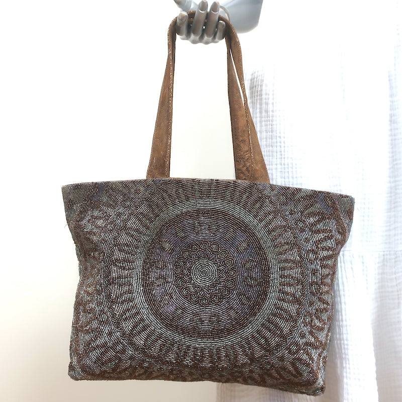 Tory Burch Beaded Tote Silver/Gold Large Shoulder Bag