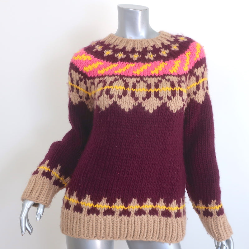Gently worn. Great condition. No flaws, however sweater is starting to pill along seams. Retails for $598!