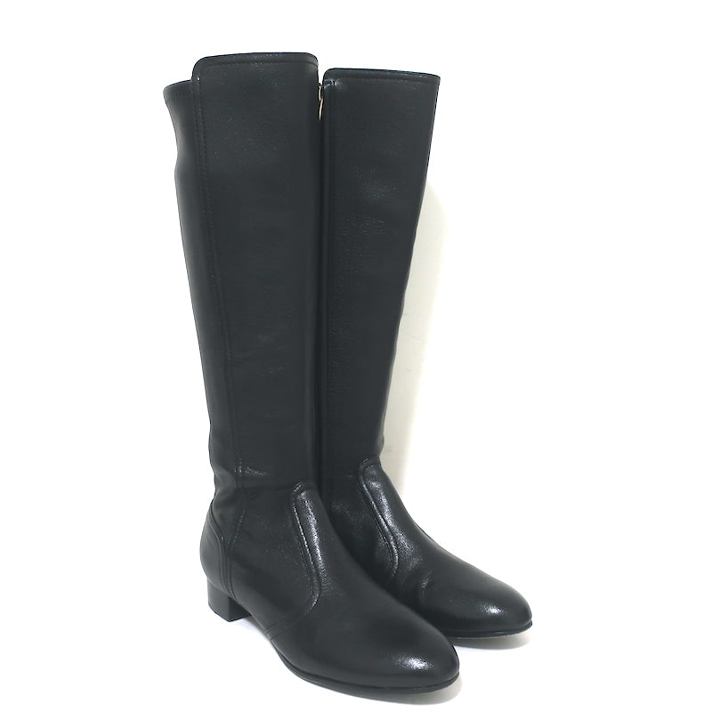 Tory Burch Knee High Flat Boots Black Leather Size 8 Measurements