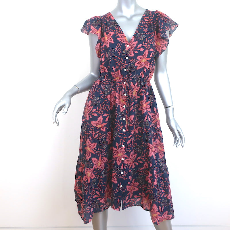 Trovata Birds of Paradis Kristi Midi Dress Navy Floral Print Size Extra Small Measurements