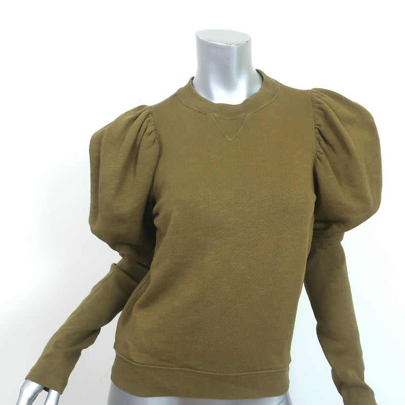 Ulla Johnson Puff Sleeve Sweatshirt Philo Olive Cotton Size Small Measurements