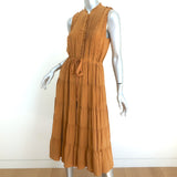 Ulla Johnson Sleeveless Tiered Midi Dress Minetta Mustard Silk Size 0