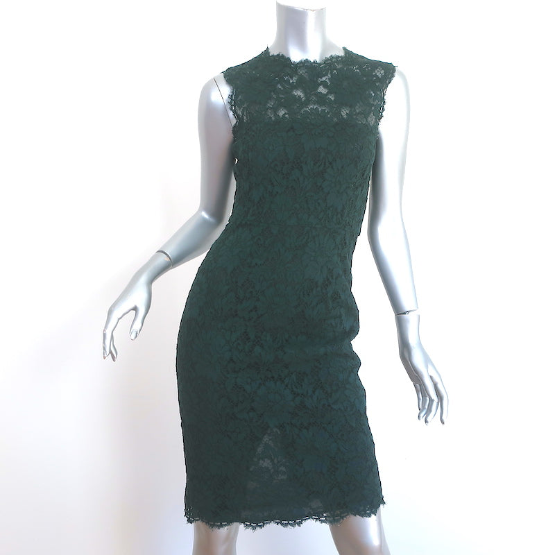 Valentino Bow-Back Lace Dress Dark Green Size 2 Sleeveless Sheath Measurements