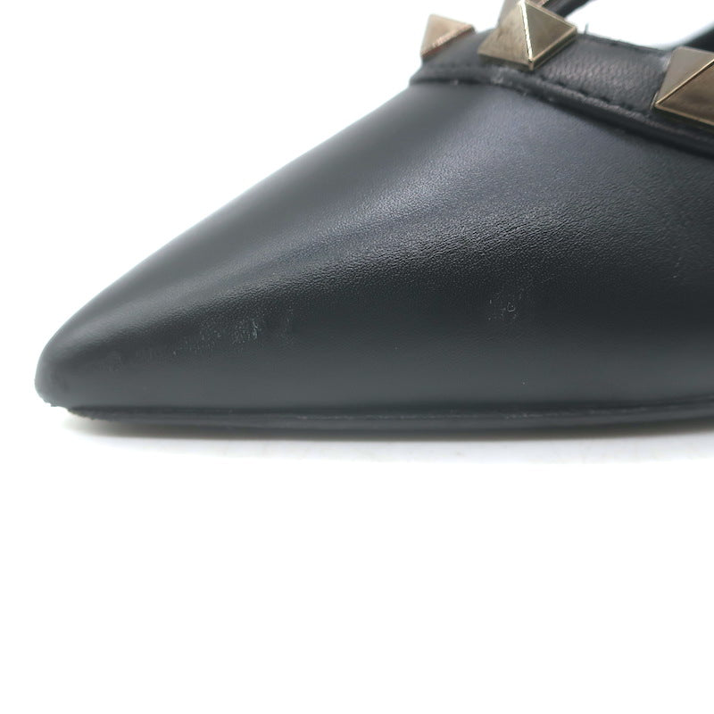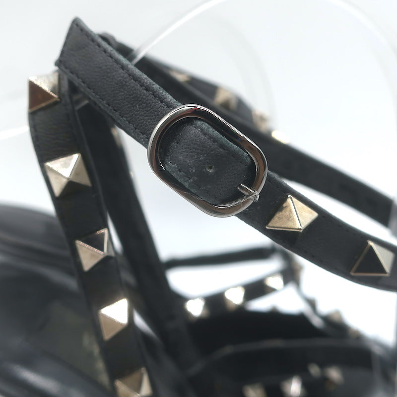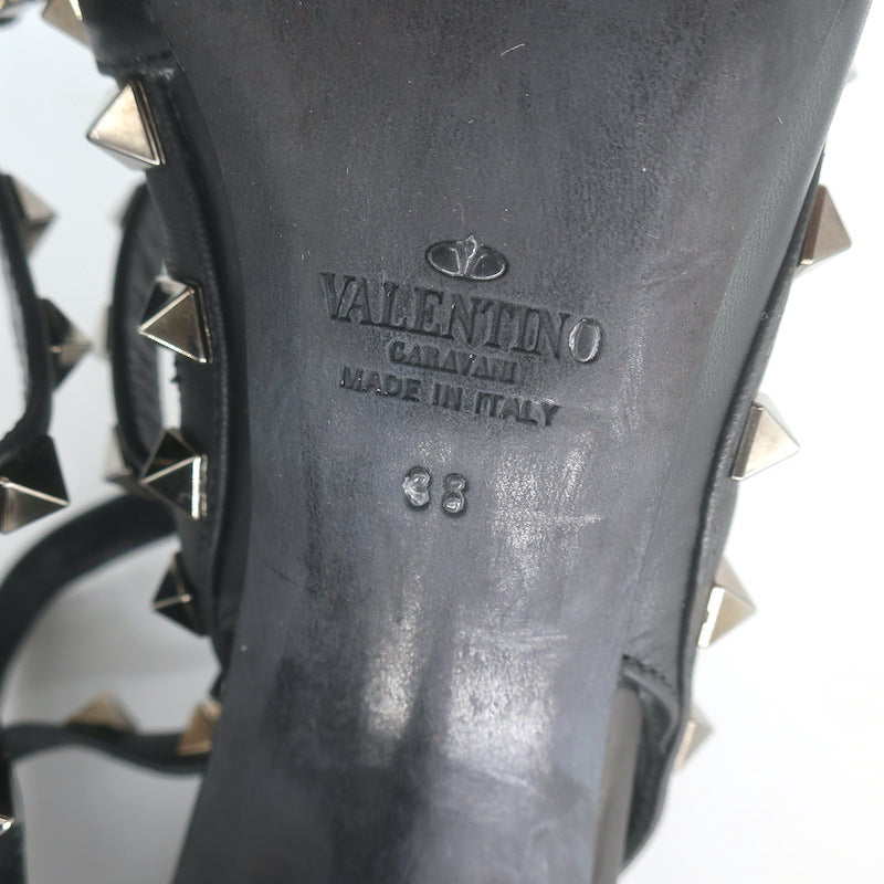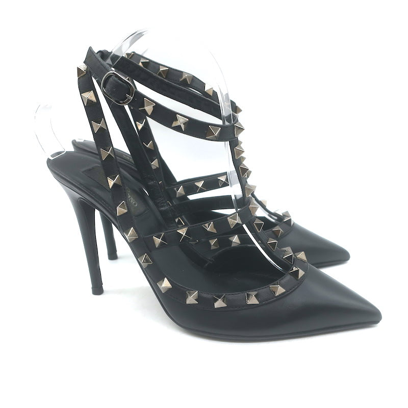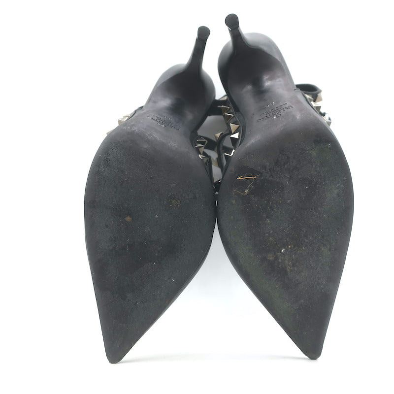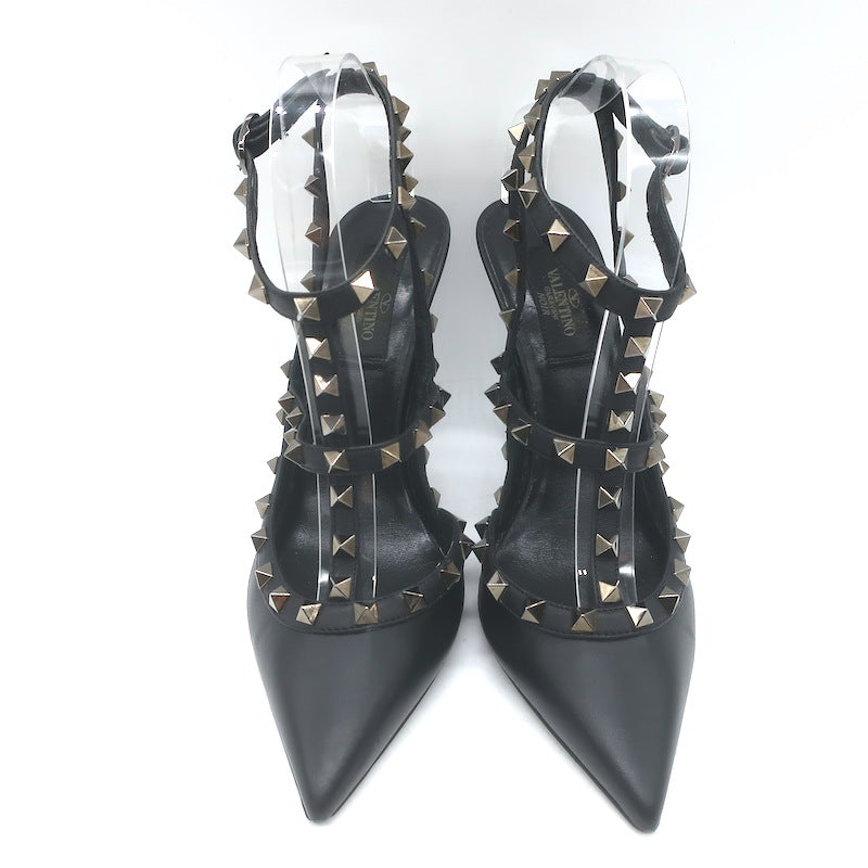 Valentino Noir Rockstud Caged Ankle Strap Pumps Black Leather Size 38