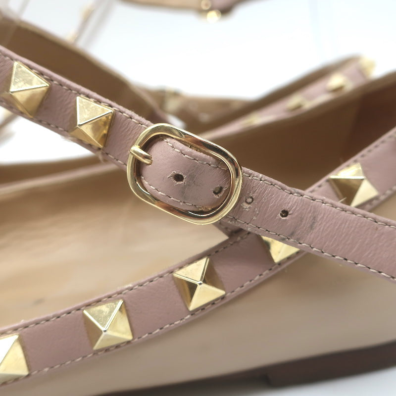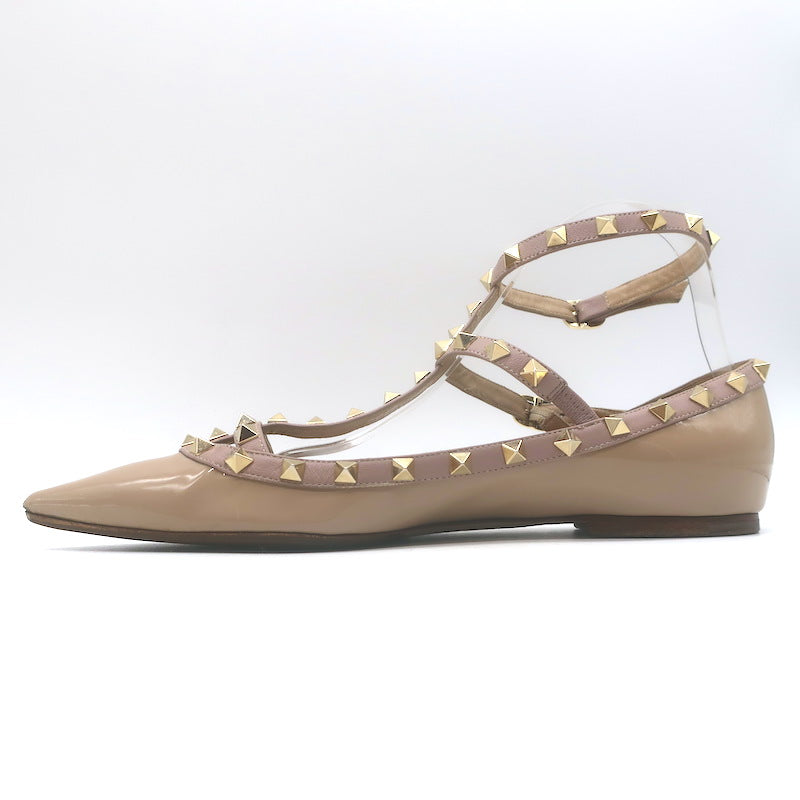 Valentino Rockstud Caged Ballet Flats Nude Patent Leather Size 41