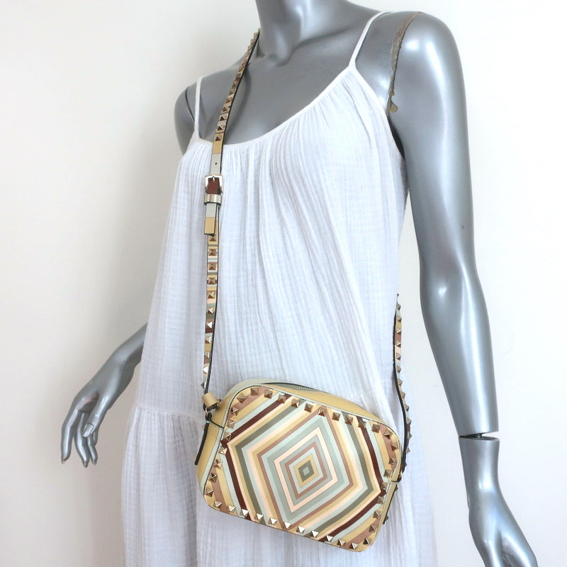 Valentino Rockstud Native Couture 1975 Camera Bag Printed Leather Crossbody Measurements