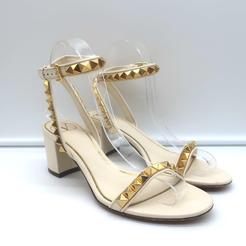 Pre-loved. Good condition. No major flaws, tiny nick in leather on edge of left toe, on exterior side of left foot strap where it meets sole and one on exterior edge of right heel. Tiny gray scuff on left heel. Does NOT come with box or dust bag. Retails for $980!
