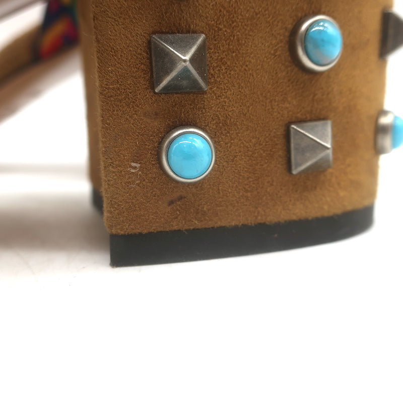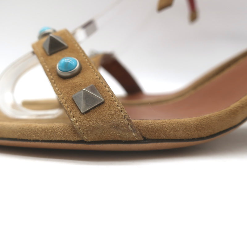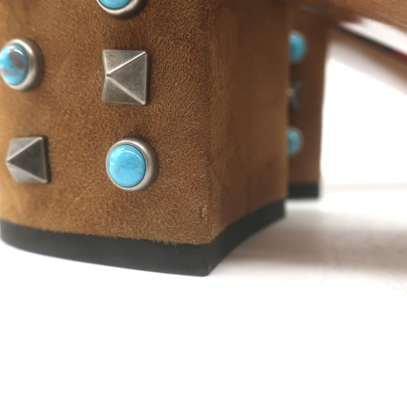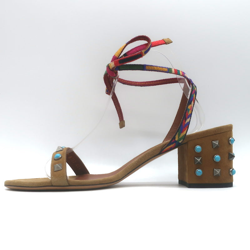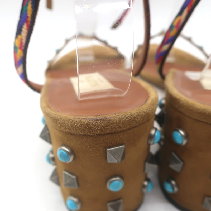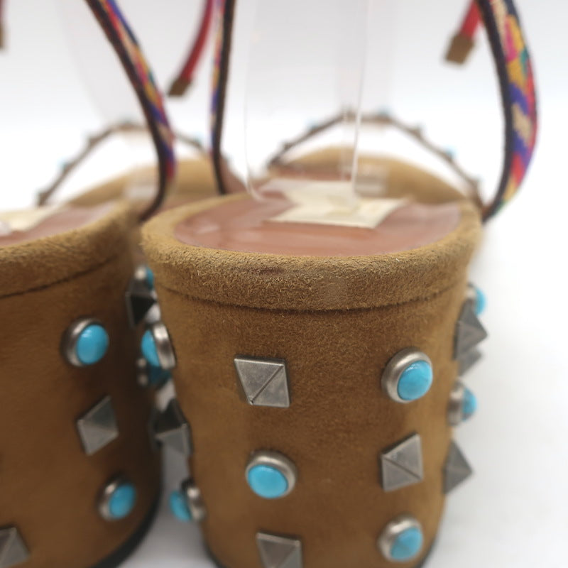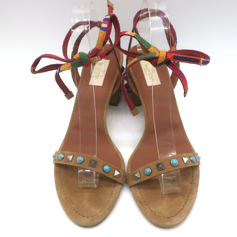Valentino Rockstud Rolling Ankle-Tie Sandals Brown Suede Size 40.5