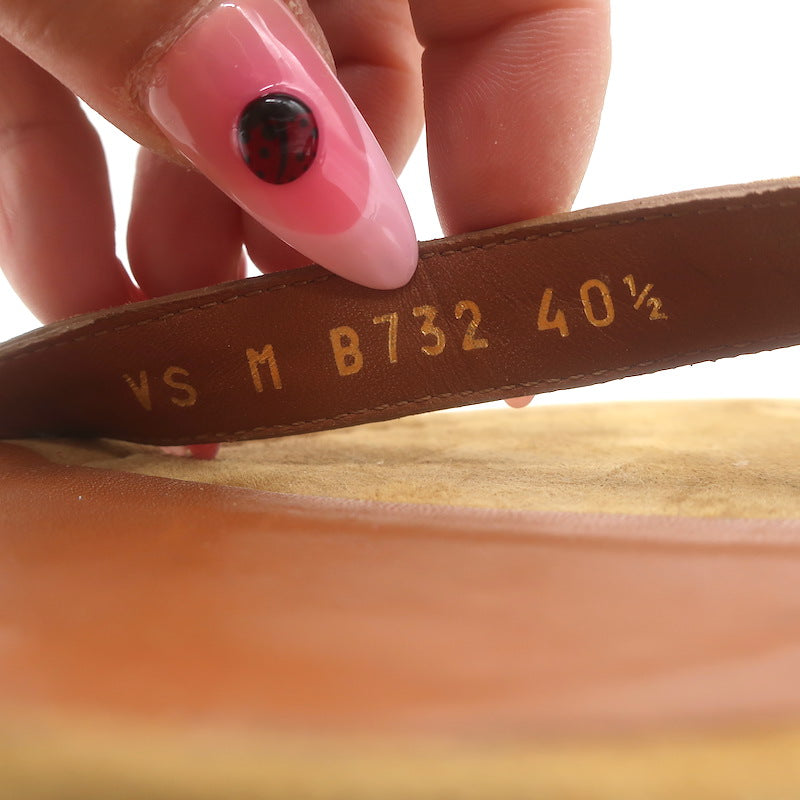 Pre-loved. Wear on tips of toes and along edges of straps and where buckled. Smudges on insoles. A few faint gray scuffs...