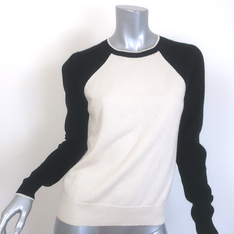 Veronica Beard Albertina Cashmere Baseball Sweater Black & Cream Size Small Measurements